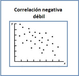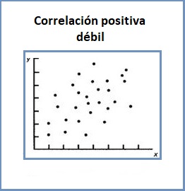 - Correlación positiva débil: Se presenta cuando los valores de las dos variables aumentan juntos, pero de forma menos clara y consistente. En el diagrama de dispersión, los puntos se distribuyen más dispersos alrededor de una línea diagonal ascendente, indicando una relación positiva, pero menos fuerte que en el caso de una correlación positiva fuerte.