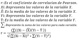 Una vez obtenido los datos, se calcula la correlación aplicando la siguiente formula: