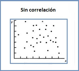 - Sin correlación: Se presenta cuando no hay una relación clara entre las dos variables representadas en el diagrama de dispersión. En este caso, los puntos se distribuyen de forma dispersa y no siguen ninguna tendencia definida, indicando que no existe relación entre las variables.