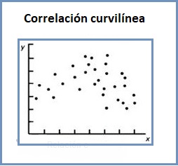 - Correlación curvilínea: Se presenta cuando la relación entre las dos variables no es lineal, es decir, no sigue una forma lineal ascendente o descendente. En el diagrama de dispersión, los puntos pueden formar una curva, mostrando una relación compleja entre las variables que no puede ser descrita simplemente como positiva o negativa.