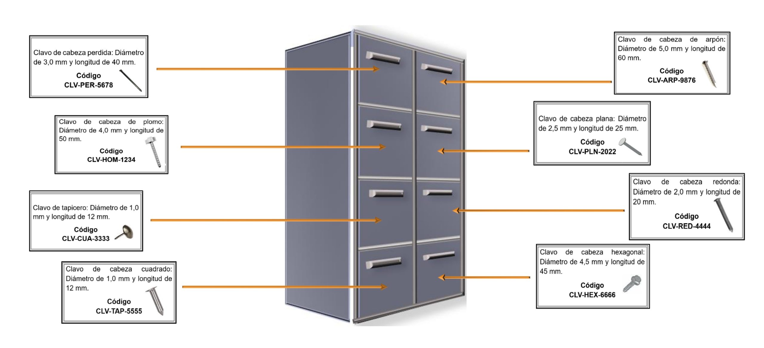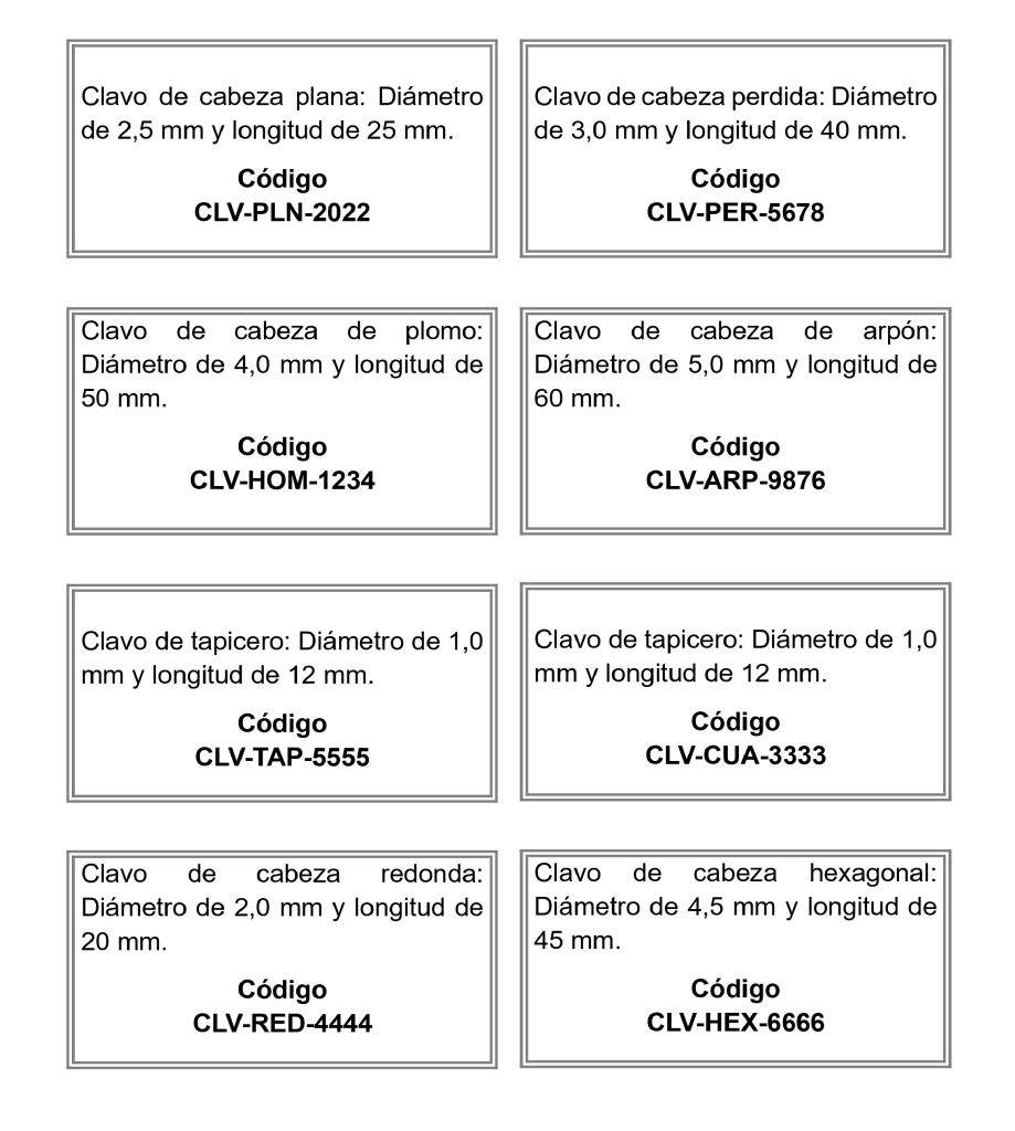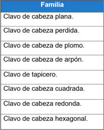 - Definir el objetivo de la clasificación: Identificar similitudes y diferencias entre los clavos y agrupar elementos similares en familias homogéneas para facilitar la planificación y la gestión en el taller.
